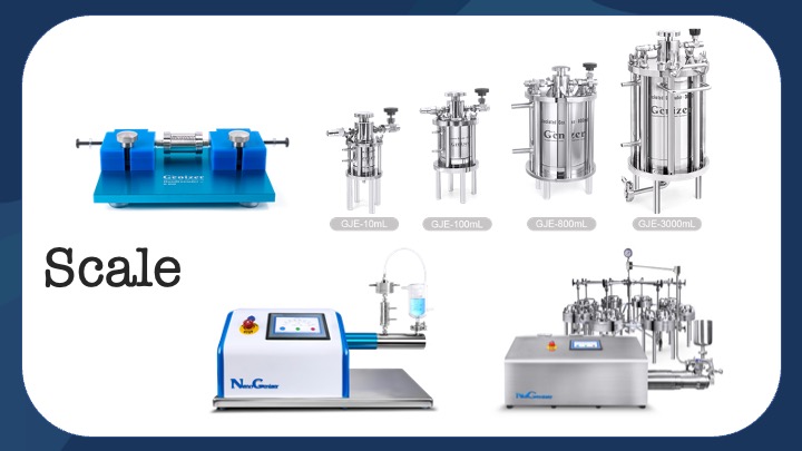 Third, what scale of sample do you need to process? Genizer makes extrusion options from 1 mL to manufacturing scale.
